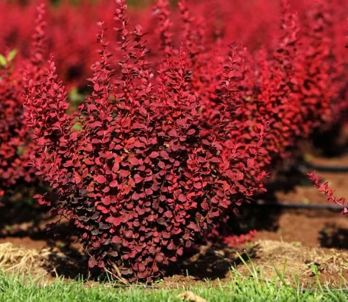 Барбарис «Ред Рокет» отличается колоновидной формой и широко распространен по всему миру. Этот сорт барбариса неприхотлив и устойчив к заморозкам. Он прекрасно смотрится как в одиночной посадке, так и в составе клумб или живых изгородей. Листья крупные, ярко-пурпурные, их цвет может изменяться в зависимости от уровня солнечного освещения. Высота кустарника достигает 2 метров, а диаметр кроны – до 1 метра. Лучше всего барбарис «Ред Рокет» растет на солнечных местах, таких как склоны и возвышенности, и не переносит переувлажнения почвы.