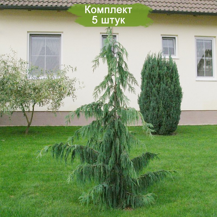 Комплект из пяти сеянцев кипарисовика Нутканского (размером от 10 до 25 см) предлагается по привлекательной цене: пять растений по стоимости четырех. Этот вид схож с кипарисовиком Лавсона, но отличается формой кроны: изначально она узко-коническая, со временем превращается в широкую пирамидальную форму, достигая в высоту 30-40 метров. Ветви растения направлены вверх, а их концы изящно свисают. Кора у дерева серо-коричневая, со временем начинает трескаться и отслаиваться тонкими слоями. Листья имеют чешуйчатую структуру с острыми вершинами. Период цветения приходится на апрель, а женские шишки, изменяющие свой цвет от коричневато-красного к коричневому с синеватым оттенком, созревают к маю следующего года.