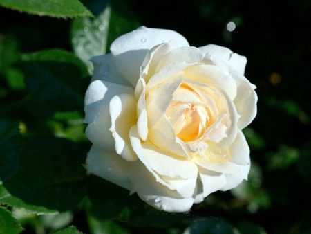 Плетистая роза Мон Жарден (Mon Jardin) — это изысканный сорт с белыми цветками, которые у основания имеют нежно-кремовый оттенок. Бутоны этой розы сначала округлые и плотные, но по мере раскрытия они удлиняются и превращаются в крупные, густомахровые цветки. На всех стадиях цветения роза выглядит великолепно: от нежно-кремового цвета в бутонах до желто-розовых оттенков при полном раскрытии, при этом никогда не становясь чисто белой. Цветки могут появляться как по одному, так и в кистях, прекрасно сочетаясь с темно-зеленой блестящей листвой. Аромат у этой розы тонкий и нежный.